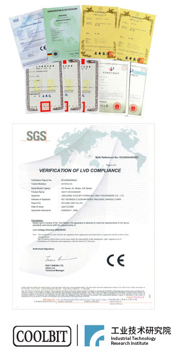 制造零缺陷是COOLBIT的品質態(tài)度,每只產品出廠前都通過前度試驗,氣密性試驗,一級通電試運行,并定制做爆破性試驗 在與臺灣工研院的技術合作下,共同開發(fā)風洞試驗臺、冷卻性能測試臺等專業(yè)測試設備,深度挖掘PLATE-FIN熱交換器散熱性能。 COOLBIT產品制造過程嚴格遵循歐洲CE規(guī)范,成功獲得SGS公司CE認證,確保COOLBIT產品能遠銷歐美。 | 試驗項目試驗標準氣密性1.1倍設計壓力強度試驗1.5倍設計壓力爆破性試驗5.0倍設計壓力 | |
