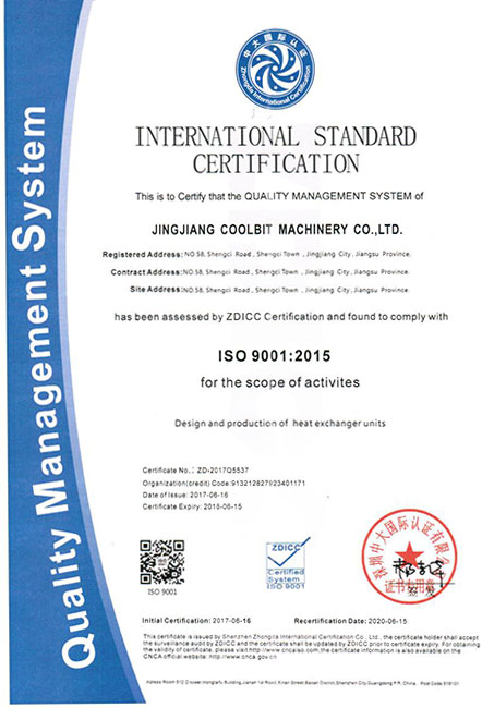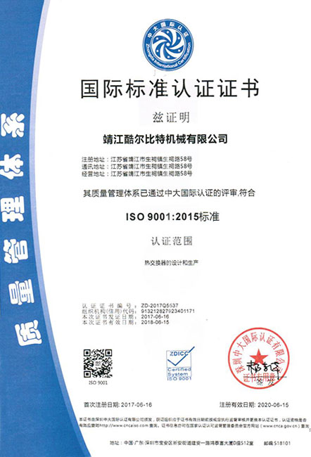 祝賀靖江酷爾比特機(jī)械有限公司獲得 ISO9001:2015質(zhì)量體系認(rèn)證
